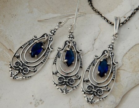 AINSA – srebrny komplet z szafirem