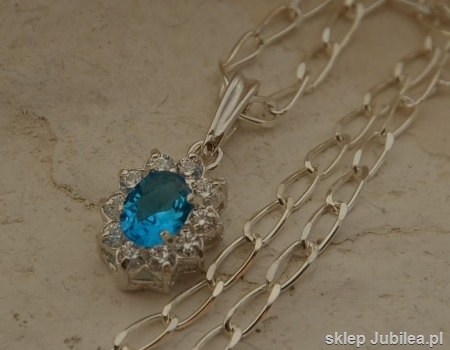 Przedstawiamy Państwu eksluzywny, srebrny wisiorek, bedący nawiązaniem do najświetniejszego okresu w jubilerstwie – art deco. Centralne miejsce zajmuje owalny, naturalny, akwamaryn, wokół którego zakuto dziesięć cyrkoni.