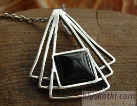 Niespotykany srebrny wisior. Stylistyka tego wyrobu to esencja uwielbienia symetrii kształtów. Całość doskonale uzupełnia onyks o wymiarach 1cm x 1cm