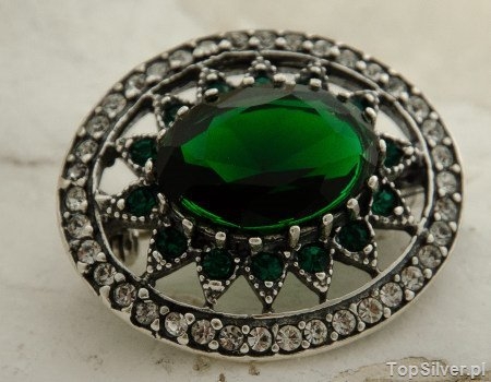 ANTONINA – srebrna broszka szmaragdy z kryształ
