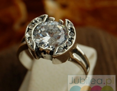 Stylowy, srebrny pierścionek, który swoją stylistyką nawiązują do biżuterii z początku ubiegłego wieku produkowanej w Wiedniu. Motyw zdobniczy symbolicznie przedstawia owoc, a w całość wkomponowano 8kryształków Swarovskiego.