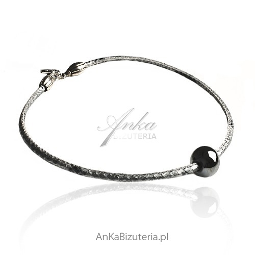 Skóra została połączone z elementami ceramiki – kuleczka w ciemnym graficie, która odbija jak lustro. Naszyjnik idealnie wpasowuje się w bieżące trendy. Oryginalny wzór naszyjnika, dla kobiet które śledzą modowe trendy. Absolutnie: do pracy i na randkę.