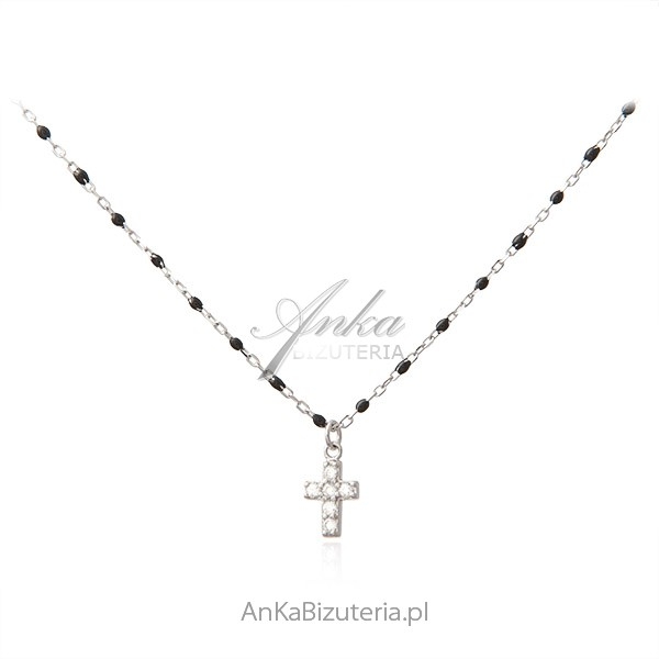 Srebrny naszyjnik próba 925 rodowany z czarną emalią i cyrkoniami