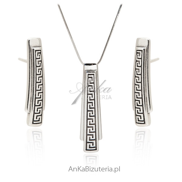 Komplet biżuterii srebrny z greckim wzorem oksydowany.
