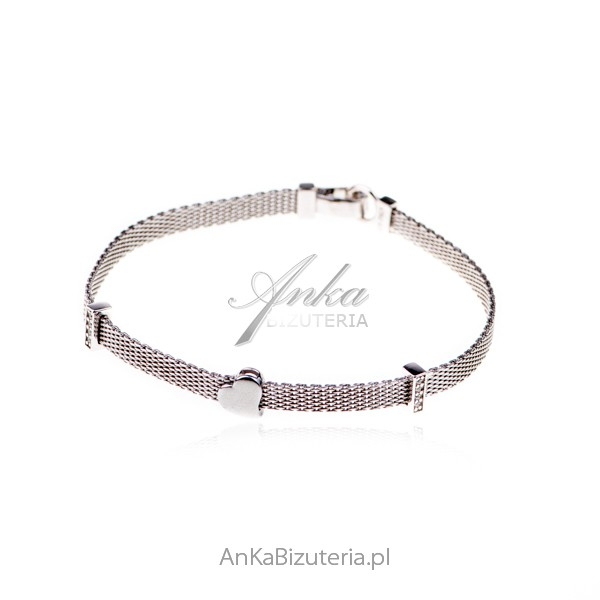 Bransoletka srebrna mesh z serduszkiem