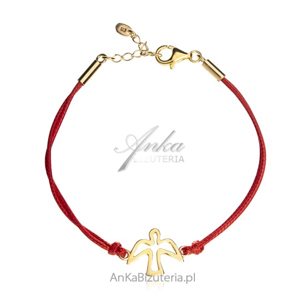 Bransoletka srebrna – na czerwonym woskowanym sznurku z chrześcijańskim znakiem ryby.