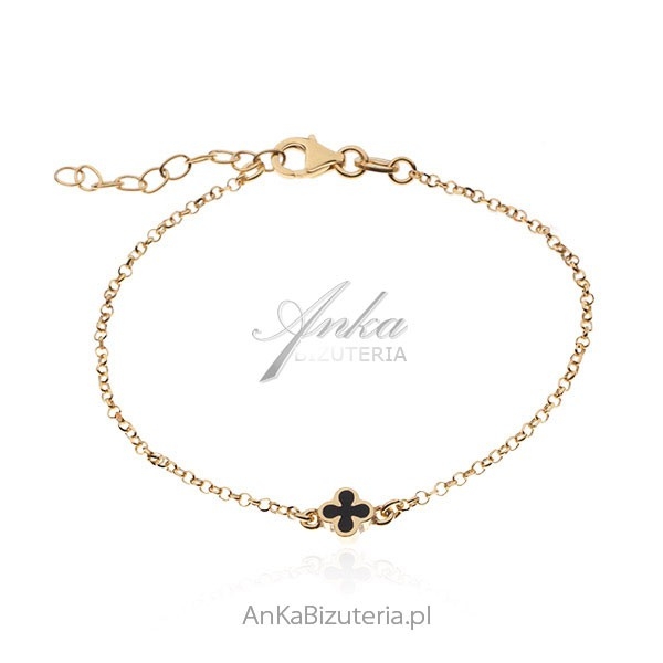 Bransoletka srebrna pozłacana z czarną koniczynką