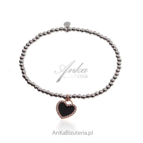 Wymiary serca: 1,3 cm/1,3 cm (czarna emalia z cyrkoniami pozłacana różowym złotem) Opakowanie do bransoletki Gratis – zdjęcie.