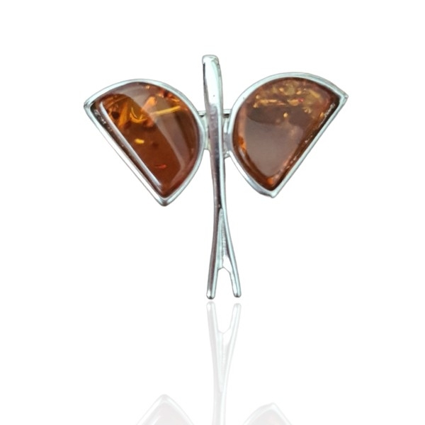 Srebra broszka próba 925 z bursztynem Waga broszki ~ 2,5 g