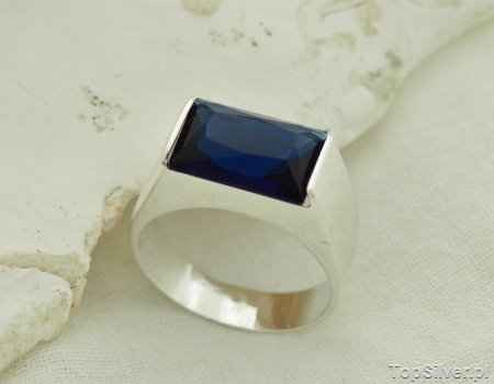 W pierścieniu obsadzono szafir (zamiennik jubilerski) w wymiarze 14x10mm.