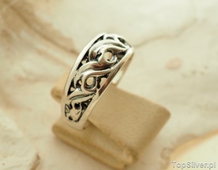 Srebrny pierścień którego wzór przypominający brazylijskie fale na plaży Copacabana wprawi w zachwyt każdego..