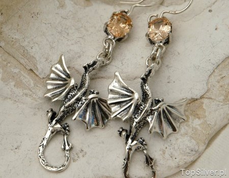 Oryginalne i niezwykle efektowne kolczyki, w których połączenie srebrnego oksydowanego smoka z pięknie wybarwionym topazem złocistym, zakutym w srebrną oprawkę stanowi unikalne połączenie.