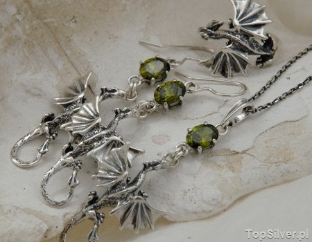 DRAGON – srebrny komplet smoków z oliwinem