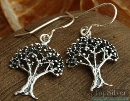 Srebrne kolczyki przedstawiające mistrzowsko wykonane drzewa. Kolczyki świetnie się prezentują.