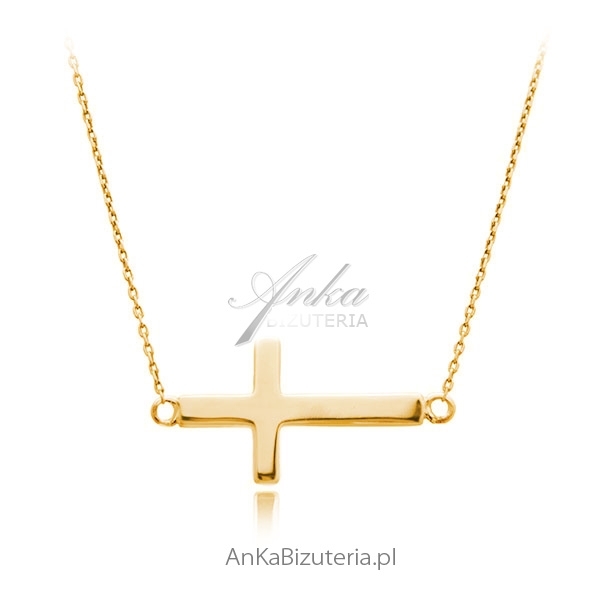 Duży krzyżyk poprzeczny złoty modna biżuteria srebrna