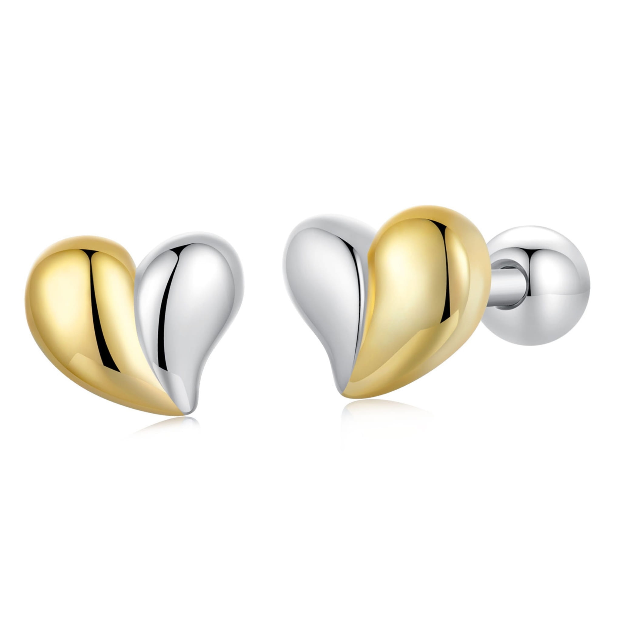 Srebrne kolczyki pozłacane: dwukolorowe serduszka. zapięcie: sztyfty zakręcane kulkami materiał: srebro 925, srebro 925 pozłacane kształt/motyw: serduszka wymiary: 5,0*6,0 mm  sztyft całość: 9,0 mm waga: 1,10 g marka: SilverBeads model: K823 Gratis eleganckie opakowanie. Kolczyki zostaną zapakowane w eleganckie pudełeczko prezentowe. W przypadku zakupu kilku par kolczyków lub zestawów kolczyki-bransoletka, naszyjnik kolczyki zostaną one zapakowane razem do jednego większego pudełka. Jeśli kupujesz biżuterię dla kilku osób i potrzebujesz dodatkowych pudełeczek lub woreczków satynowych znajdziesz je w naszej ofercie.