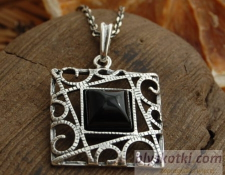 Piękny srebrny wisior, inspirowany osiągnięciami imperium biznatyjskiego. W misterne filigranowe zdobienia wkomponowano onyks.