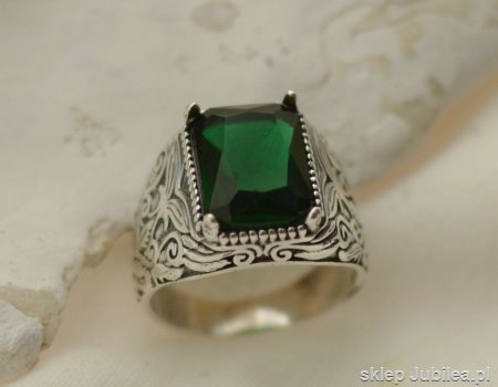 Przedstawiamy Państwu niesamowity srebrny sygnet: szmaragd (synt)w kształcie ośmiokąta – oktagonu zakuty został w majestatycznej oprawie. To gratka dla miłośników niebanalnej srebrnej biżuterii z kamieniami!
