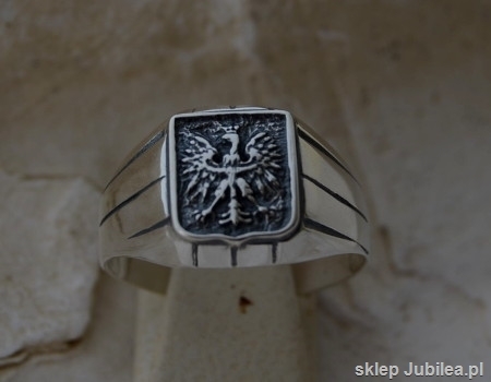 Srebrny sygnet, w którego centralnym punkcie umieszczona jest godło Polski – orzeł w koronie. Ten piękny przemdiot z pewnością przyniesie dume posiadaczowi.