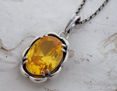 Połączenie cytrynu oraz srebra to para która przebojem wdarła się do klasyków biżuterii. Piękny złocisty kolor kamienia w połączeniu z połyskującym na biało srebrem to kompozycja, która wprawi w zachwyt każdą miłośniczkę błyskotek 🙂 W tym miejscu przedstawiamy elegancki, srebrny wisior, w którego srebrnej, dyskretnej oprawie zakuto okazały fasetowany cytryn (synt).