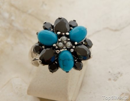 IRYDIUM – srebrny pierścień perły onyksy turkusy