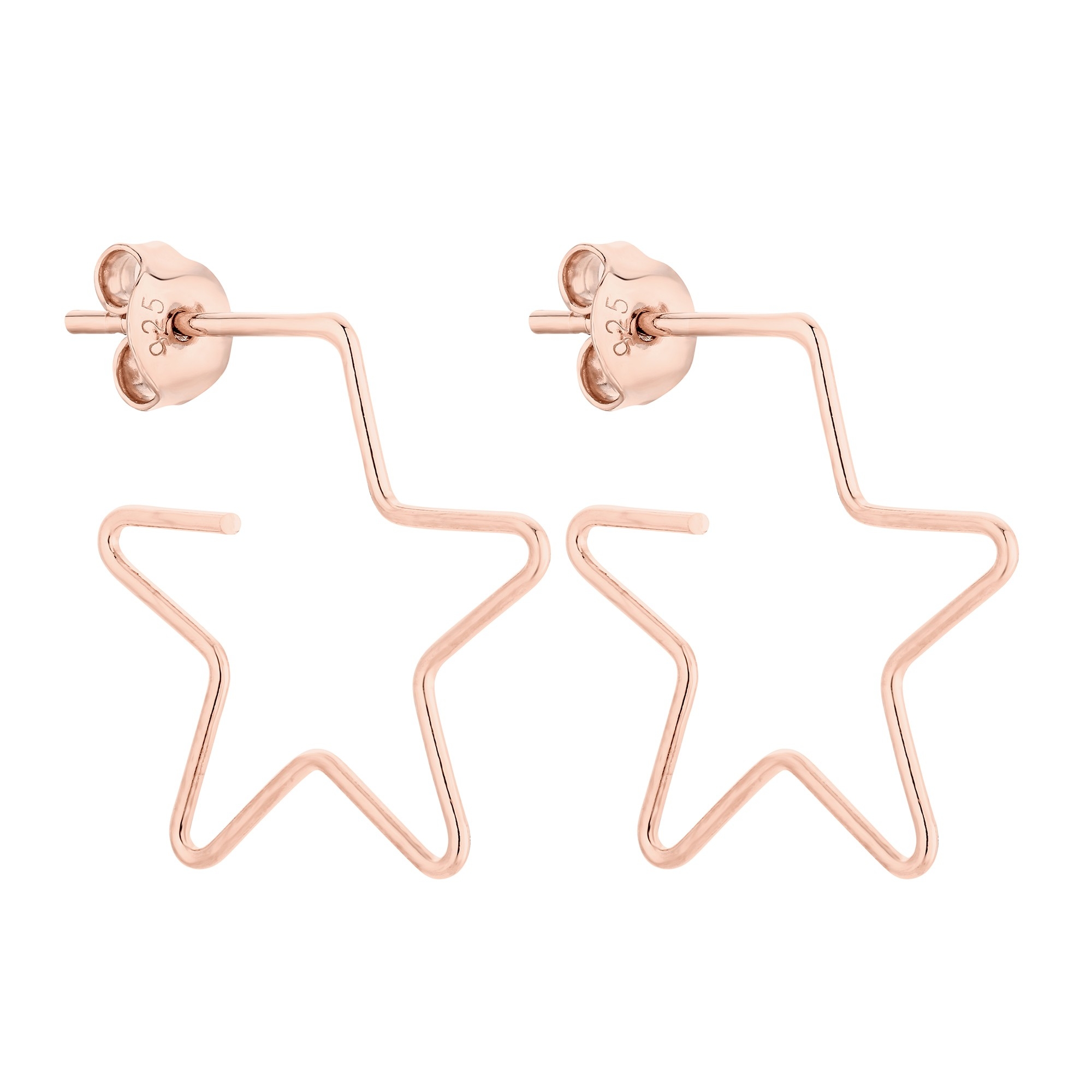 Złote kolczyki gwiazdki. Całość wykonana ze srebra 925 powlekanego 24 karatowym różowym złotem. Zapinane na sztyft. Kolczyki posiadają zapięcia (baranki).
