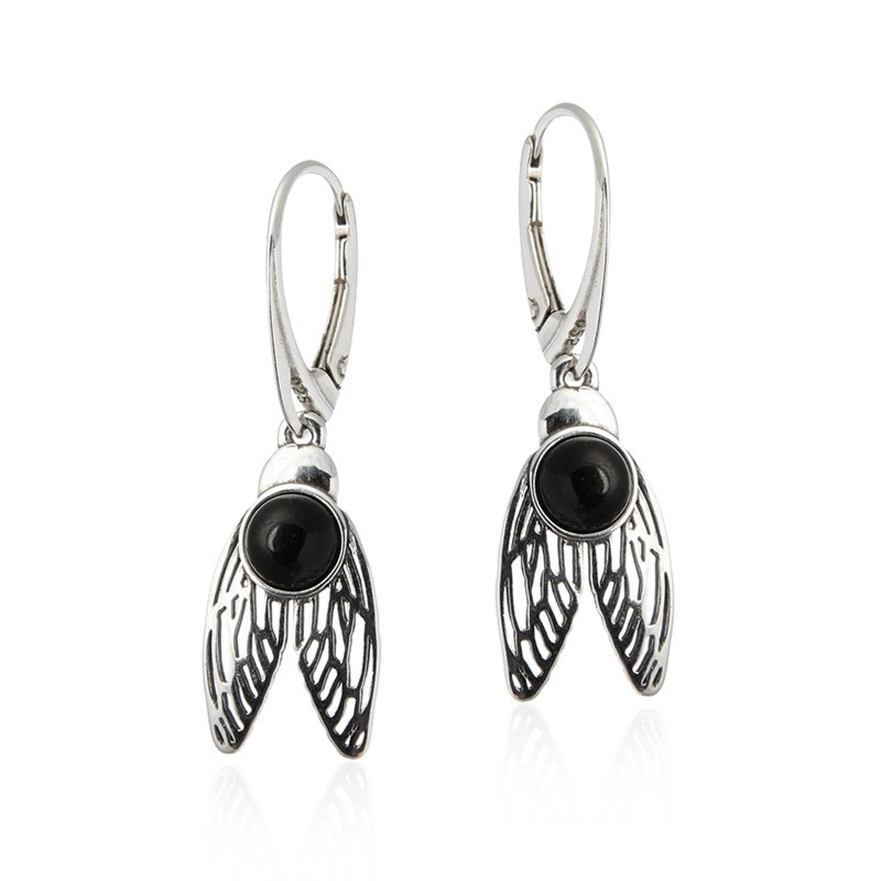 Kolczyki srebrne ażurowe z czarnym onyksem