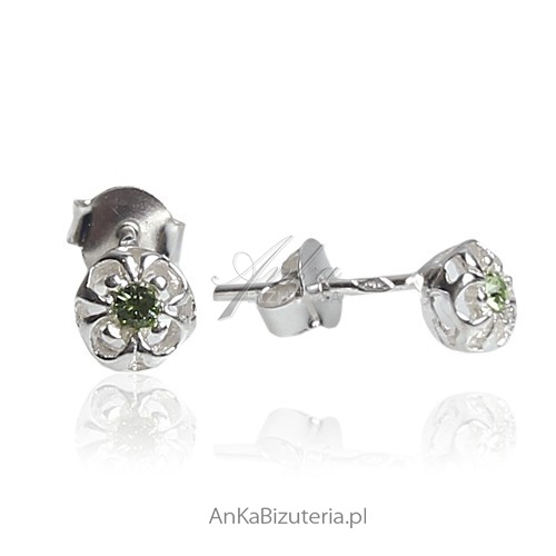 Kolczyki srebrne dla dziewczynek – Maleńkie zielone cyrkonie w kwiatku