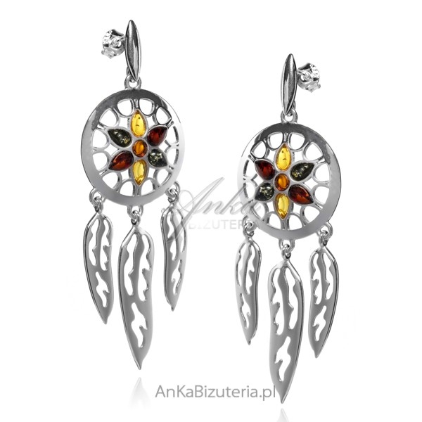 Kamienie: bursztyn mix kolorówWymiary kolczyków – 6,5 cm razem z zapięciem )/szerokość do 2,2 cm