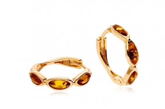 Kolczyki srebrne pozłacane kółka z koniakowym bursztynem