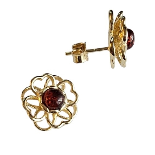 Kamienie: bursztyn naturalny w kolorze koniakWymiary kolczyków – średnica 1,5 cm