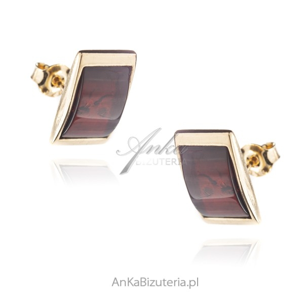 Kolczyki srebrne pozłacane z wiśniowym bursztynem
