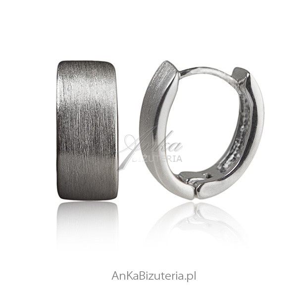 Kolczyki wykonane ze srebra 925 , rodowane pięknym jasnym rodem. Kółeczka są gładkie, satynowane. Bardzo wygodne zapięcie, zawiasy które zamonowano na dole kolczyków pomagają uchylić kolczyk , natomiast sztyft wchodzi w otwór i się zatrzaskuje.