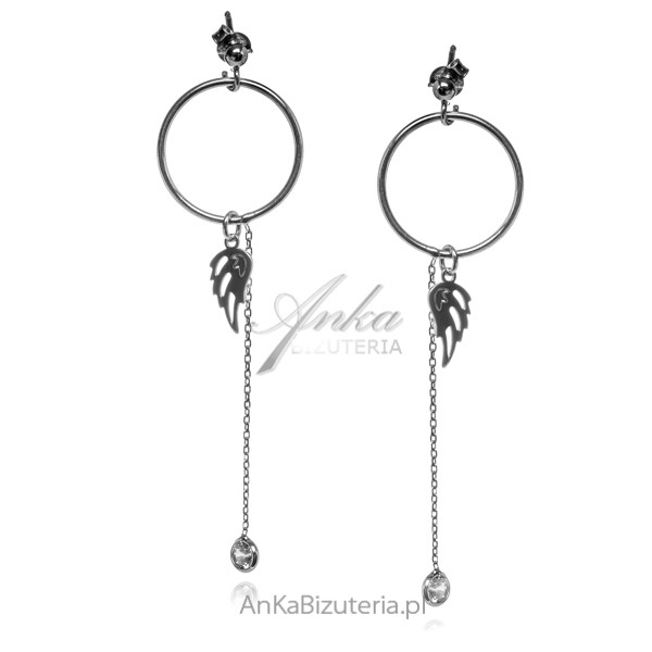 Kamień: biała cyrkoniaWymiary kolczyków -długość całkowita 6,5 cm / wielkość kółka, średnica 1,7 cm