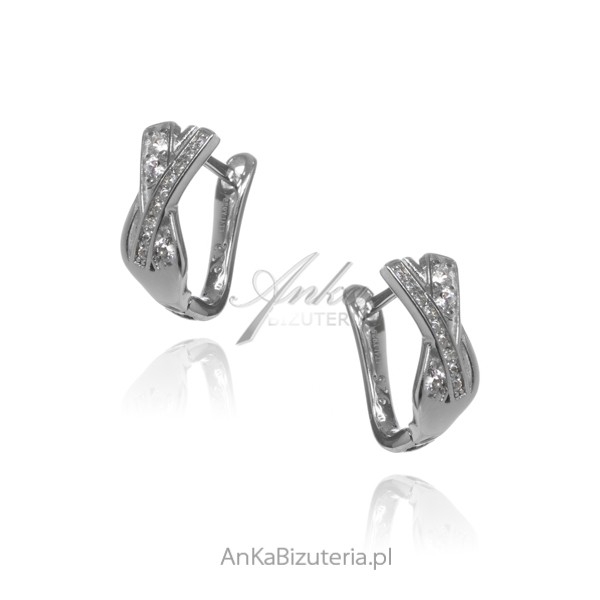 Srebrne kolczyki próba 925 rodowane z białymi cyrkoniamiWaga kolczyków ~ 2,7 gWymiary kolczyków – szerokość 0,7 cm/długość 1,3 cmKamienie: białe cyrkonie
