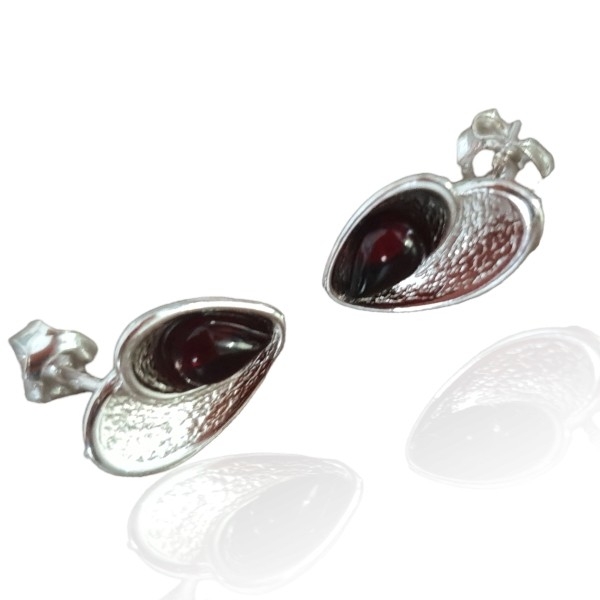 Kolczyki srebrne z koniakowym bursztynem. Srebro próba: 925