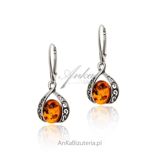 Kolczyki srebrne z bursztynem . Biżuteria z bursztynu.