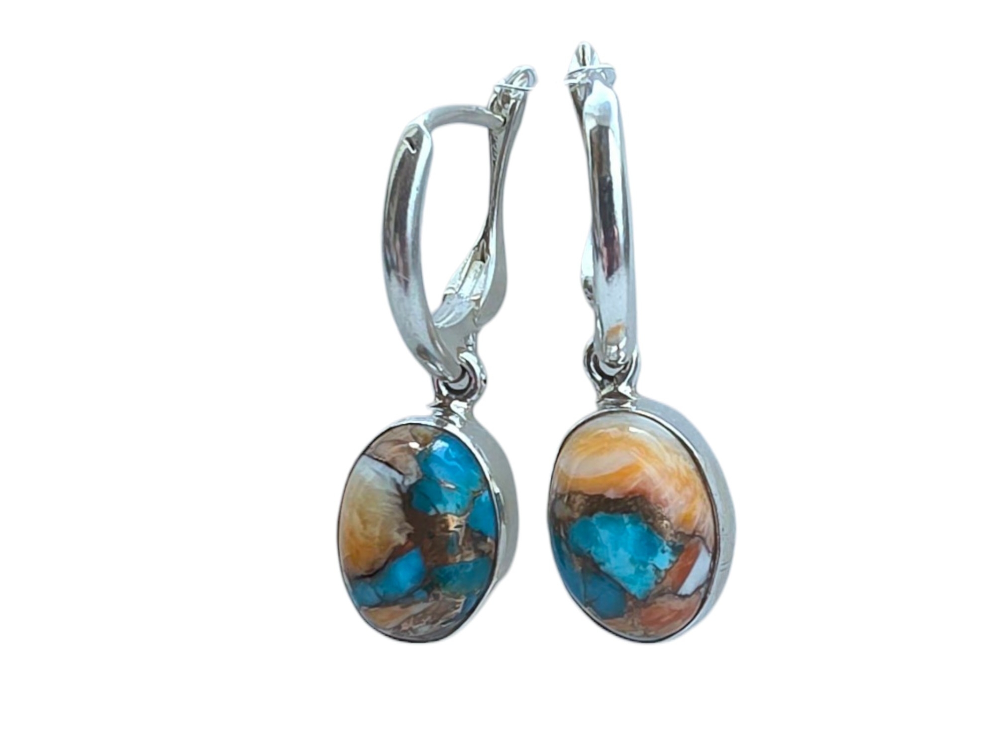 Kamienie: turkus miedzianyWymiary kolczyków – dł. 3,2 cm (razem z biglem)/szerokość 1,2 cmTyp zapięcia kolczyków – bigiel angielski (istnieje możliwość zamówienia bigla zwykłego – otwartego)Opakowanie do kolczyków gratis – na załączonym zdjęciu.