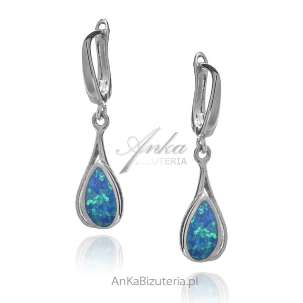 Kolczyki srebrne z niebieskim opalem na angielskim zapięciu