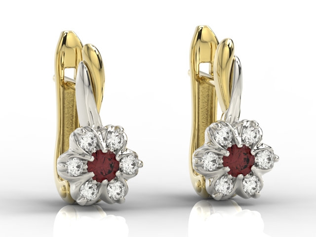 Kolczyki z żółtego i białego złota z granatem i cyrkoniami APK-68ZB-C