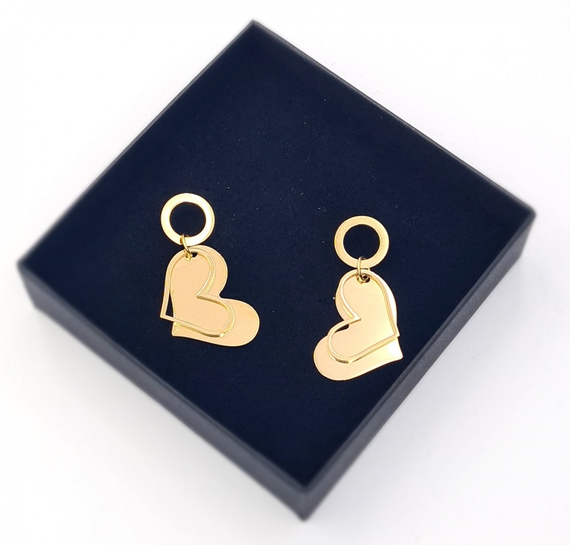 Kolczyki ze stali chirurgicznej wiszące serca. Bardzo efektowne, świetnie się sprawdzi to wielu stylizacji.