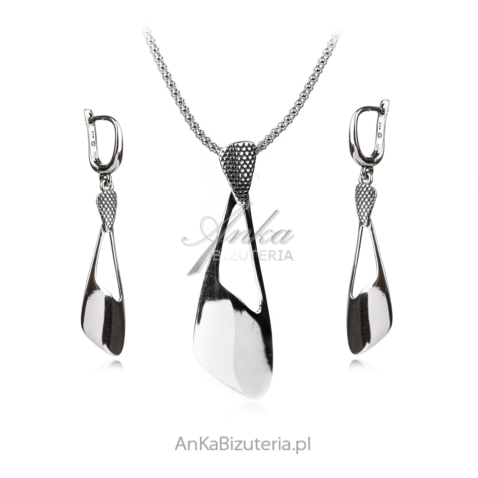 Srebrny komplet pr. 925 oksydowany Waga kolczyków ~ 4 gWaga wisiorka ~ 2,7 gWymiary kolczyków -dł. 5 cm (razem z biglem) / szerokość do 1,1 cmWymiary zawieszki – długość 4,5 cm/ szerokość do 1,5 cmTyp zapięcia kolczyków – bigiel angielskiOpakowanie do kompletu gratis – na załączonym zdjęciu. Polecamy do kompletu rodowany COREANA- do zakupienia w sklepie AnKa