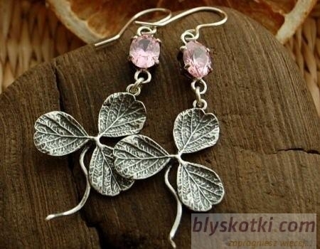 Srebrne kolczyki koniczynki – symbol szczęścia a także hit popularności. Trzylistna koniczynka połączona została z pięknym różowym kryształem Swarovskiego, zakutym w srebrną oprawę.