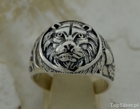 Srebrny sygnet zarówno dla Pań jak i Panów, przedstawiający wizerunek króla dżungli – LWA. W centralnym miejscu pierścienia widnieje głowa lwa. Po lewej stronie sygnetu wyrzeźbione zostało uskrzydlone serce po drugie zaś para zwierząt stojąca pod drzewem. Ten piękny przedmiot wykonany jest w całości ze srebra próba 925.