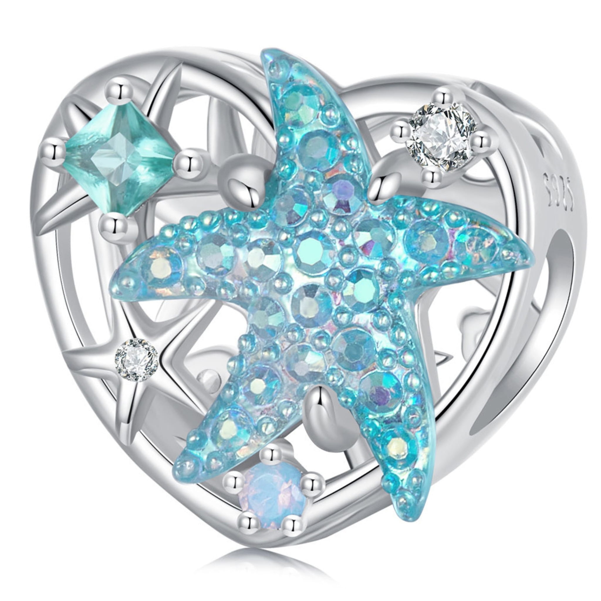 Kryształowa rozgwiazda w serduszku srebrny charms koralik beads srebro 925