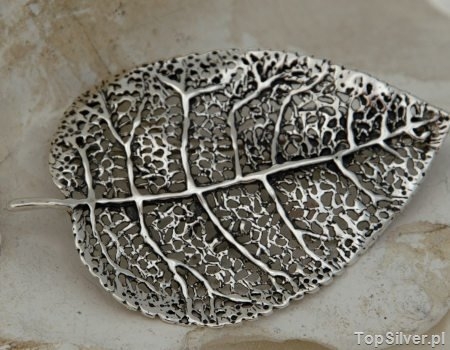 Przedstawiamy niezwykle realistyczną srebrą broszke w kształcie liścia. Naszym zdaniem inspiracją dla tego liścia były liście buku lub olchy. W każdym razie doskonała i precyzyjna praca złotnika jest przed Państwem.