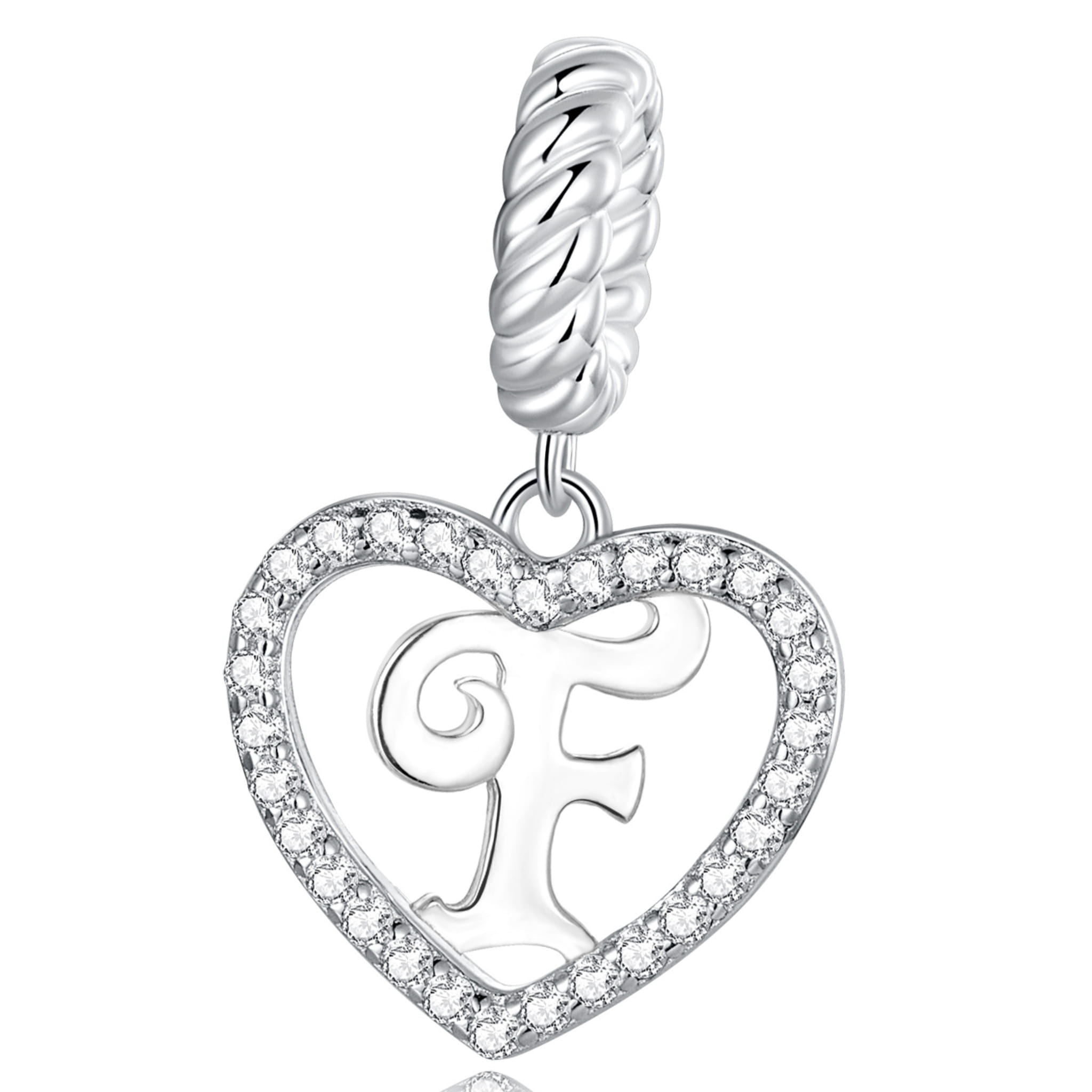 Literka F w serduszku alfabet srebrny charms zawieszka do bransoletki modułowej