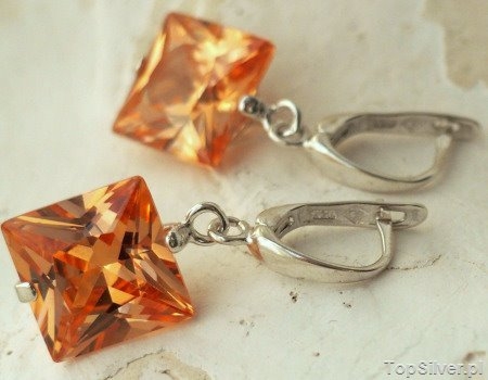 W srebrnej, dyskretnej oprawie zakuty został kwadratowy, okazały topaz złocisty z pracowni firmy Swarowskiego.