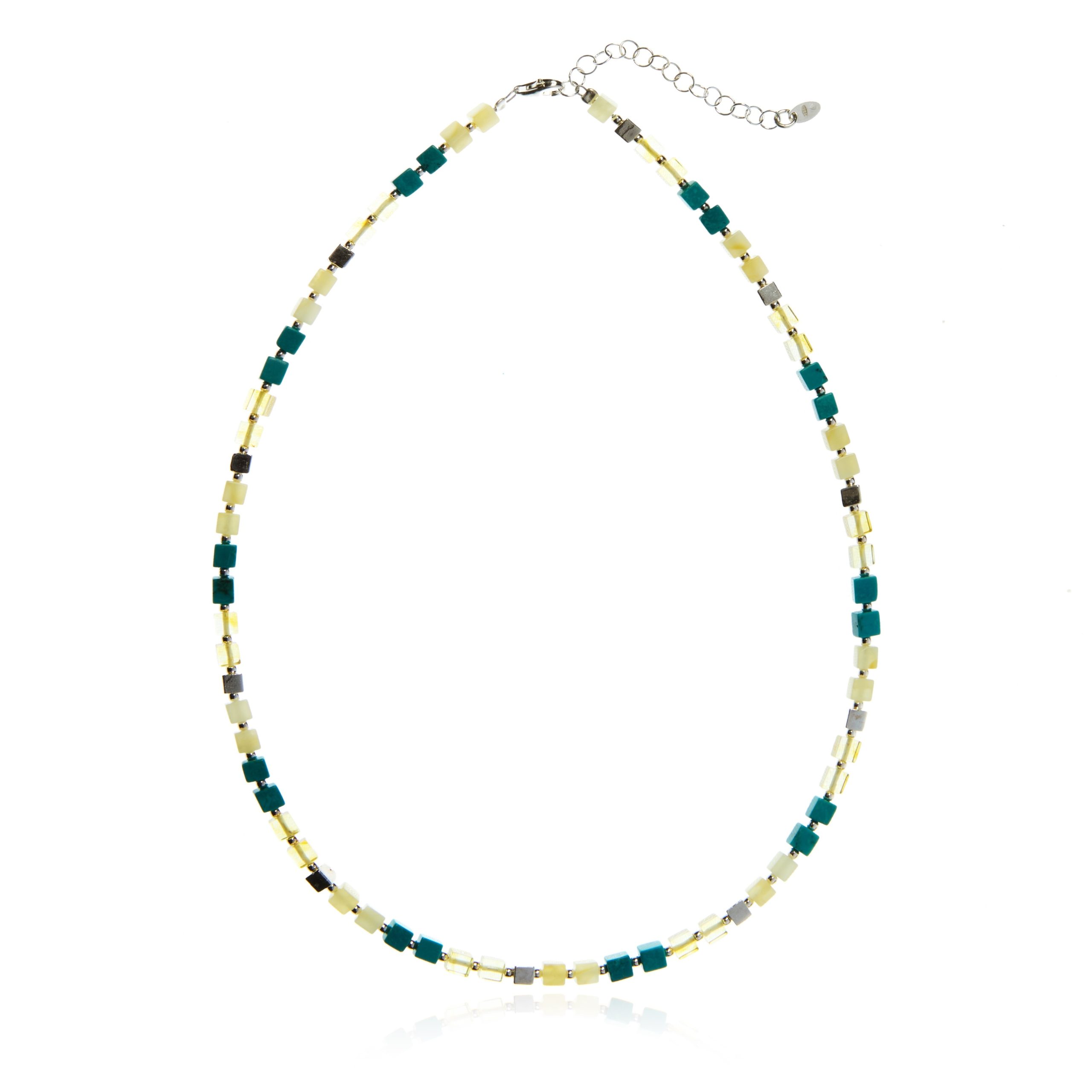 Wymiary bursztynowych i turkusowych kosteczek: 4 mm x 4 mm x 4 mm