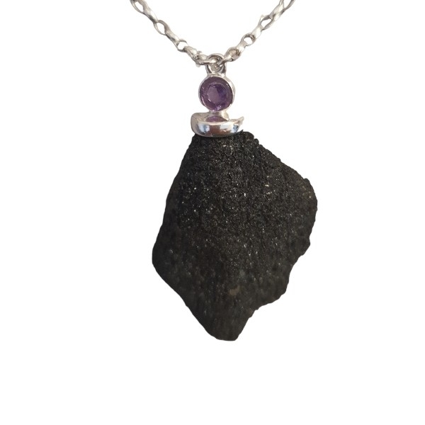 Naszyjnik srebrny z czarnym bursztynem i ametystem